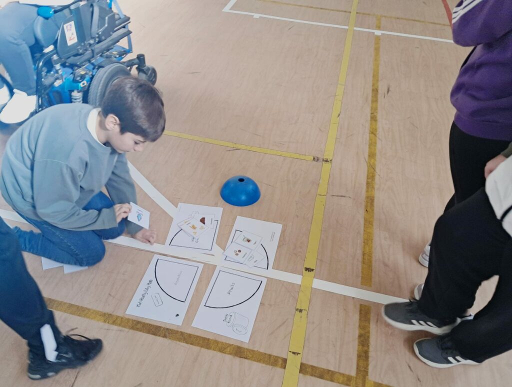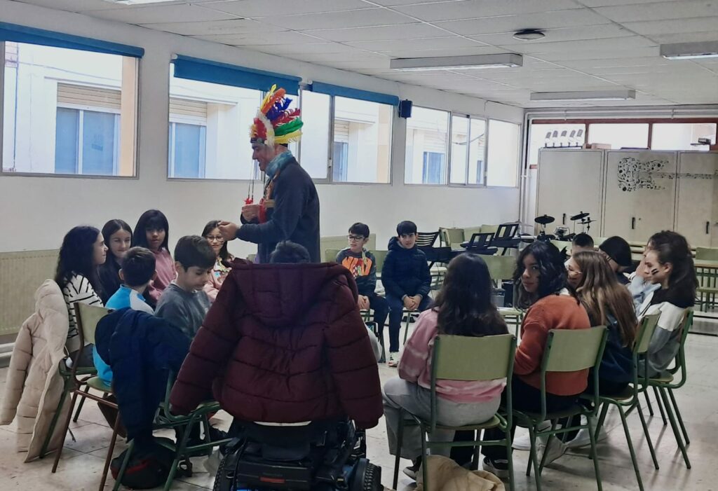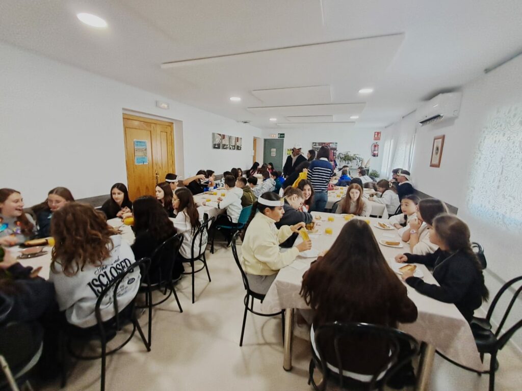 La actividad comenzó con un desayuno saludable compartido, fomentando hábitos de vida equilibrados y el espíritu de convivencia entre etapas educativas. Posteriormente, se organizaron diferentes talleres de juegos cooperativos en el pabellón inspirados en la temática de Thanksgiving. Los grupos mixtos, formados por alumnado de ambas etapas, trabajaron juntos para superar diferentes juegos. Además, también interpretaron en el aula de música una pieza de percusión inspirada en los indios Wampanoag, pueblo originario relacionado con la primera celebración de Thanksgiving.