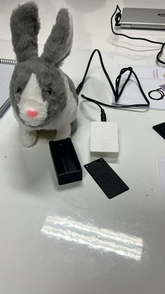 Además estamos diseñando unos pulsadores de juguetes para que personas con parálisis cerebral puedan usarlos, en colaboración con AFAD. Y estamos colaborando con el Departamento de Hostelería haciéndoles los número para unos meseros.