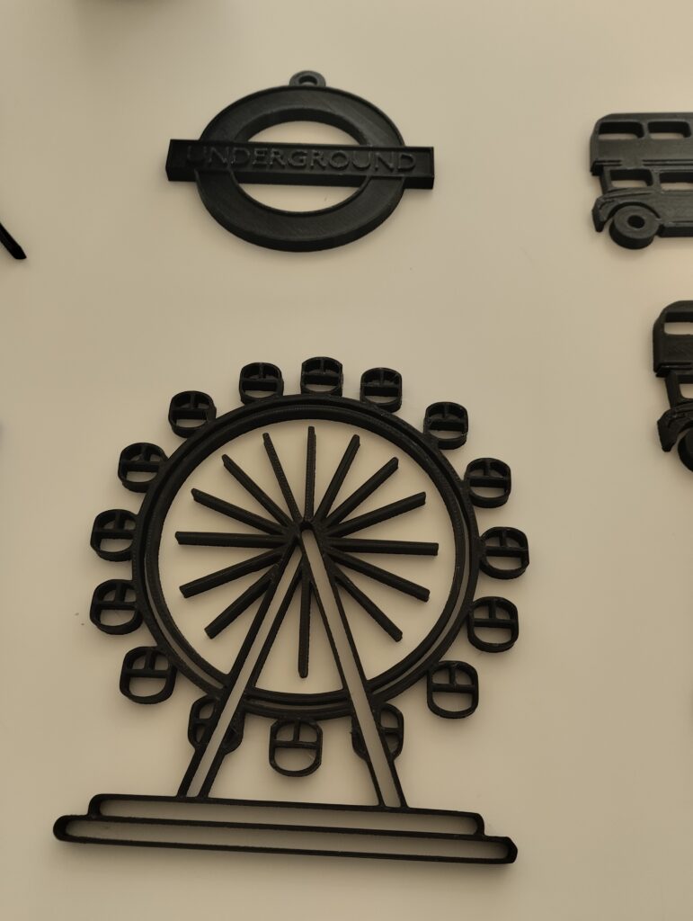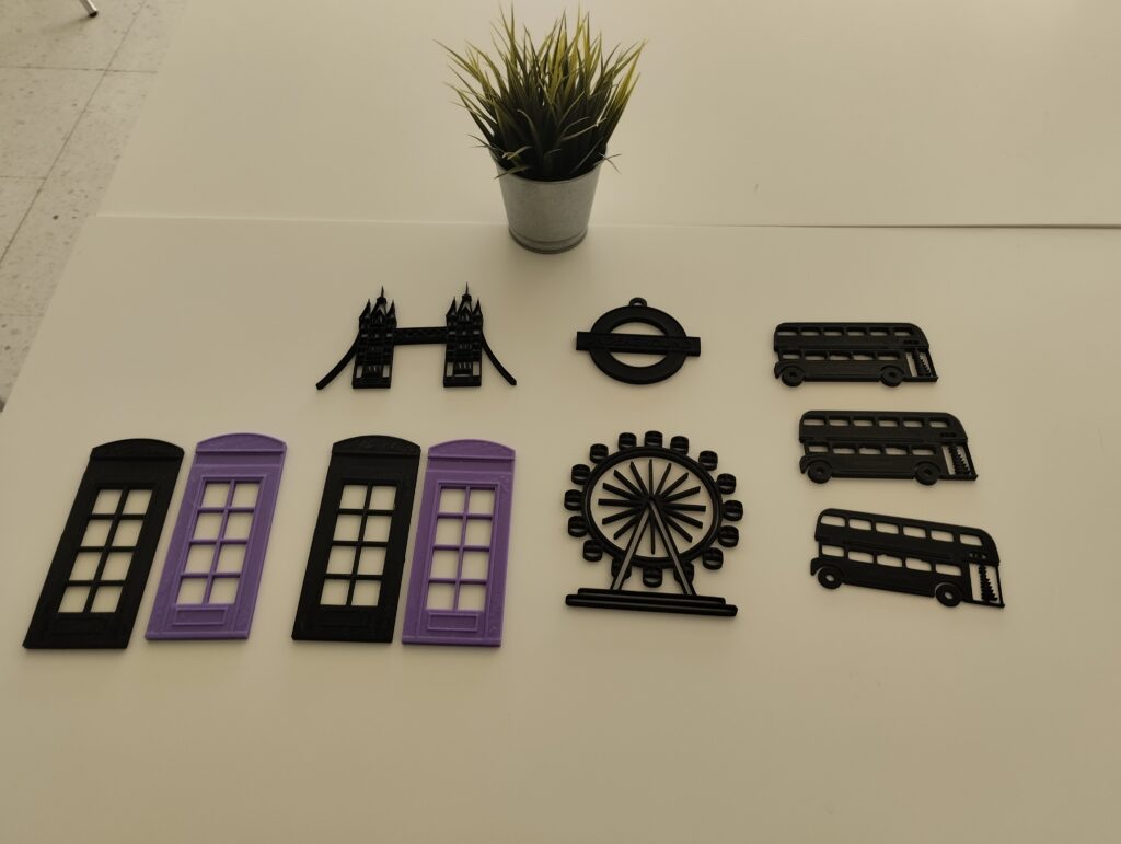 El curso pasado, en colaboración con el alumnado del Taller de recreo de impresión 3D, pudimos celebrar unas sesiones a través de las cuales, el alumnado del taller 3D enseñaba al alumnado de 1º ESO en la materia de Tecnología, cómo trabajar con la impresión 3D. El alumnado de 1º diseño unos colgadores para los cables de la Smart TV, relacionándolo con la cultura Británica y en el presente curso, los hemos mejorado y ya los tenemos impresos. Ahora en colaboración con el alumnado de FPB de Automoción los vamos a pintar.
