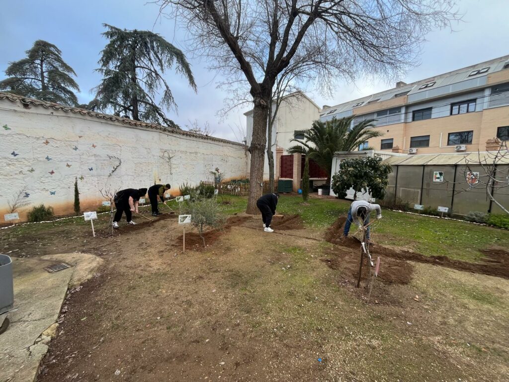 En esta primera fase se enterró el goteo de la parte exterior del huerto, que contiene árboles y arbustos, para proceder a conectar el goteo a través de una electroválvula que ayude a regar un vez se active.