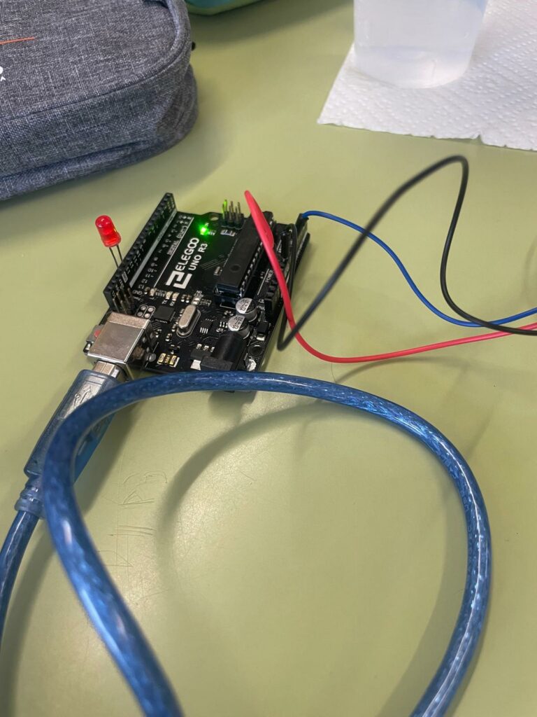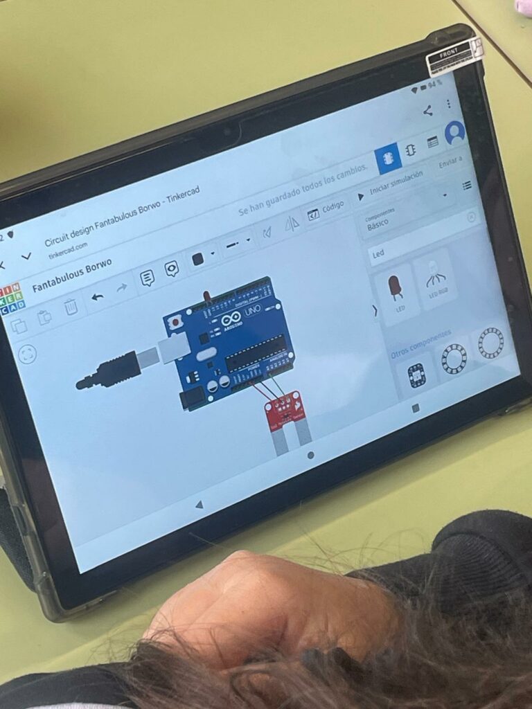 En el Jesús Castillo el alumnado tiene unos bancales móviles preparados por el Equipo Docente y por el alumnado del CEIP, en el que tienen diversas plantas. También tiene un bidón en el que tienen el agua para el riego. La función de nuestro alumnado era enseñar a programar a través de Arduino y de un sensor capacitivo pinchado en al tierra, cómo al detectar dicho sensor que la tierra no tiene cierta cantidad de humedad se activarán dos procesos de alarma para proceder al riego.