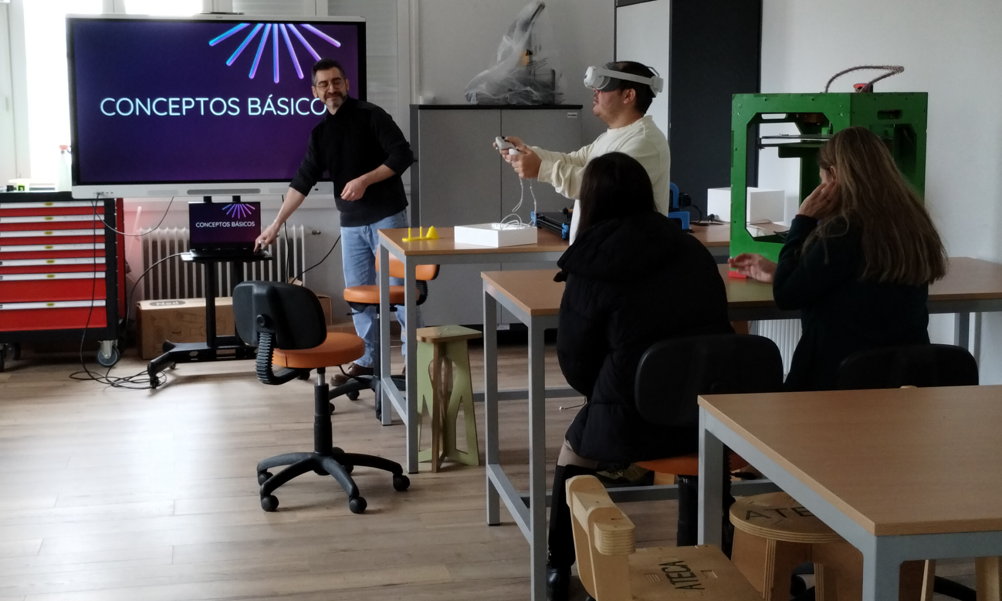 Recordemos que las aulas ATECA (Aula de Tecnología Aplicada) representan un ecosistema tecnológico completo dentro de nuestro centro. Integran realidad extendida, fabricación digital, robótica, electrónica y producción audiovisual inmersiva en un mismo espacio colaborativo y flexible.